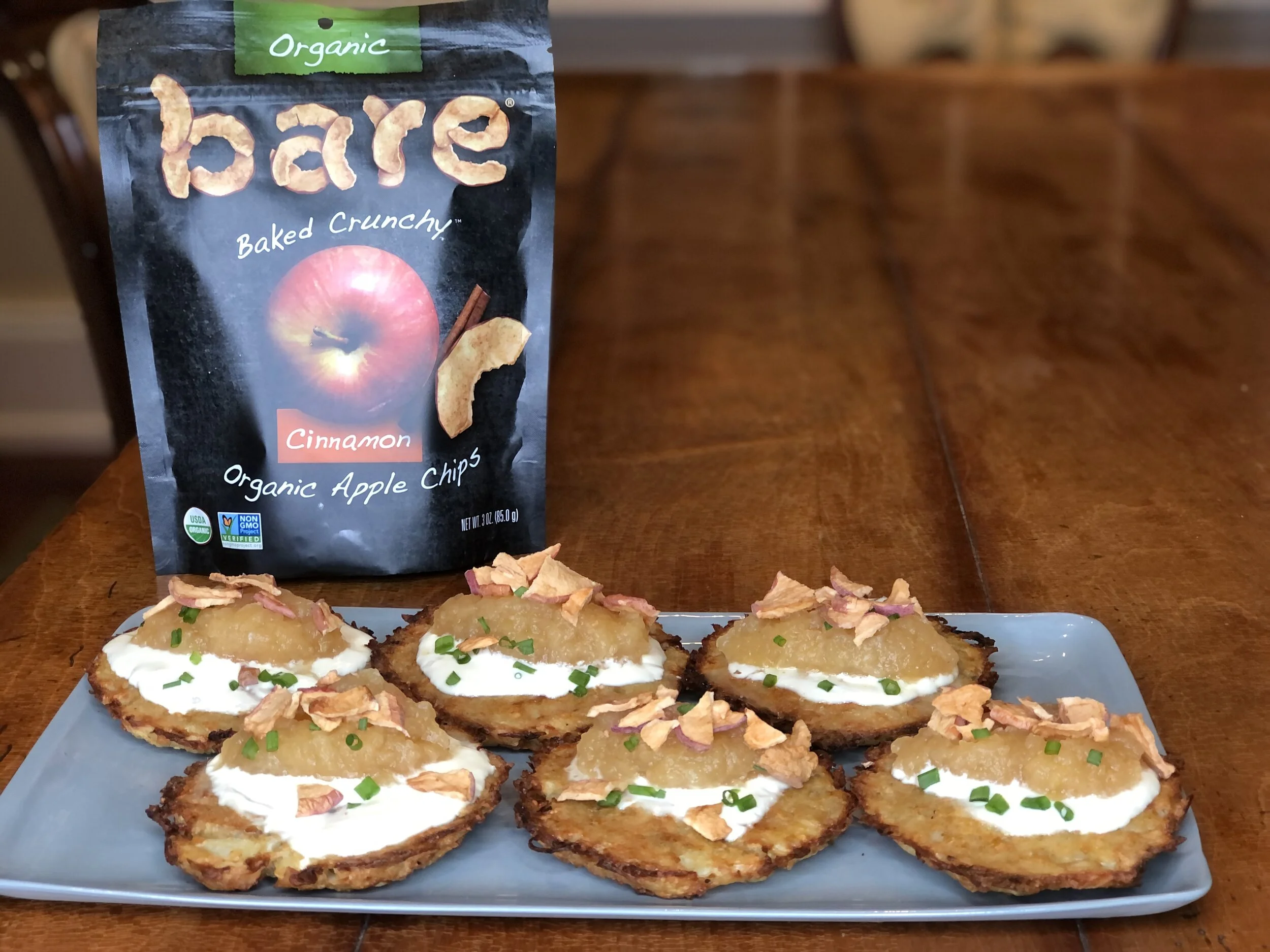 Crunchy Baked Potato Latkes with Bare Snacks Apple Chips